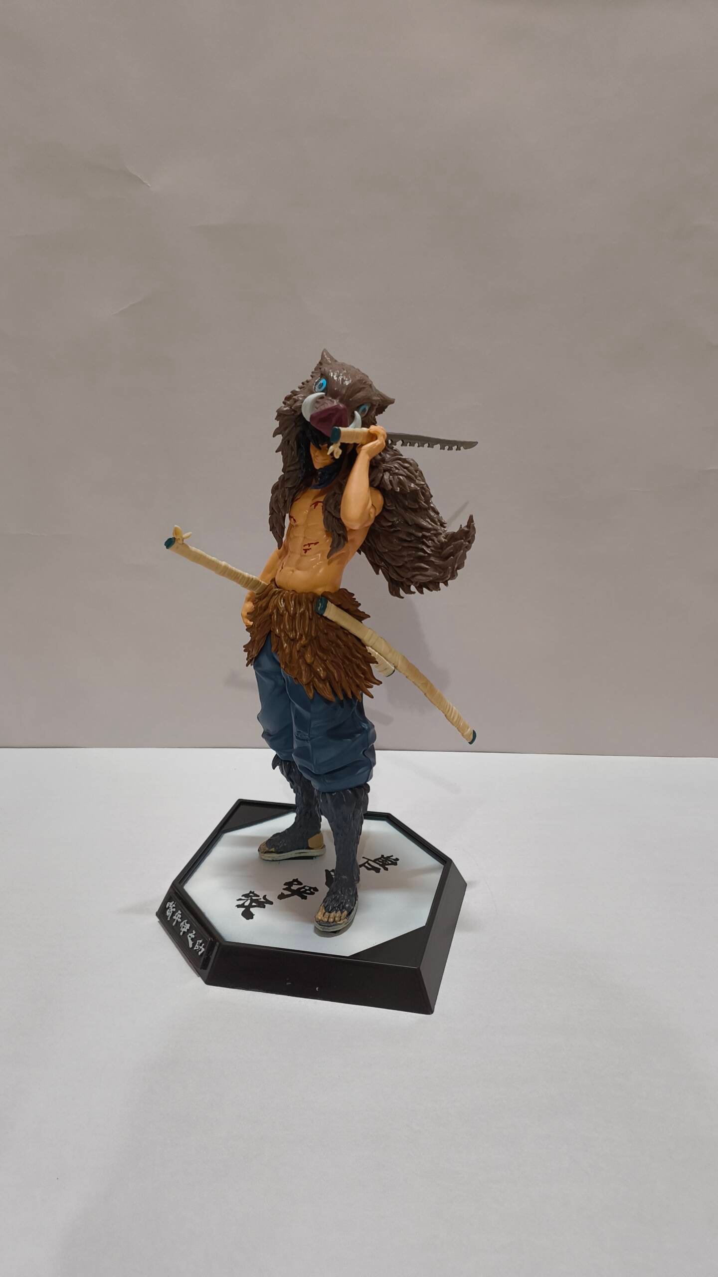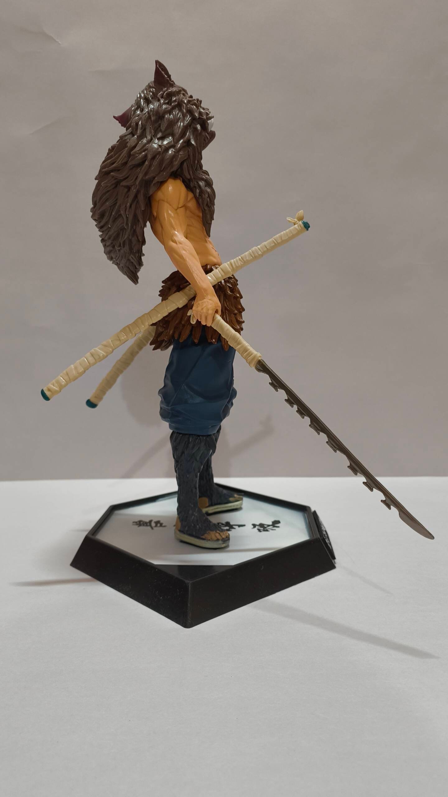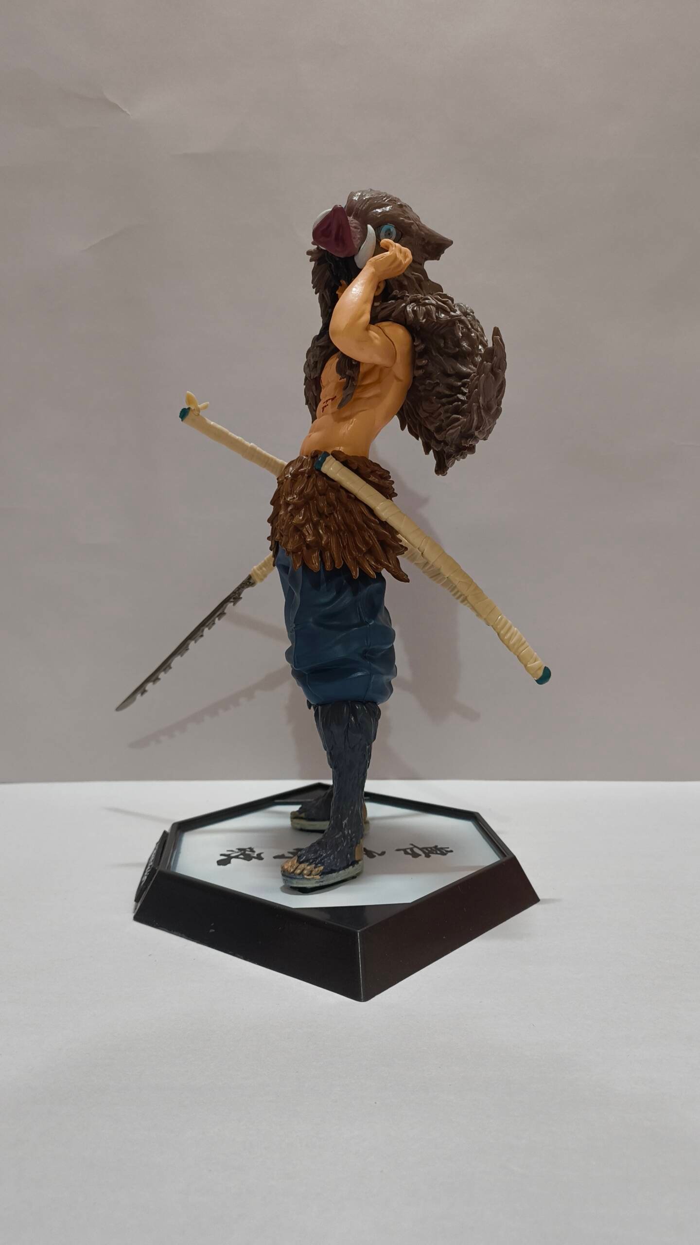 The sculpt highlights his muscular build, battle scars, and layered fur pelt with impressive texture detail. From the rugged edges of his dual blades to the natural stance that radiates wild confidence, this piece embodies Inosuke’s relentless fighting spirit and untamed personality.